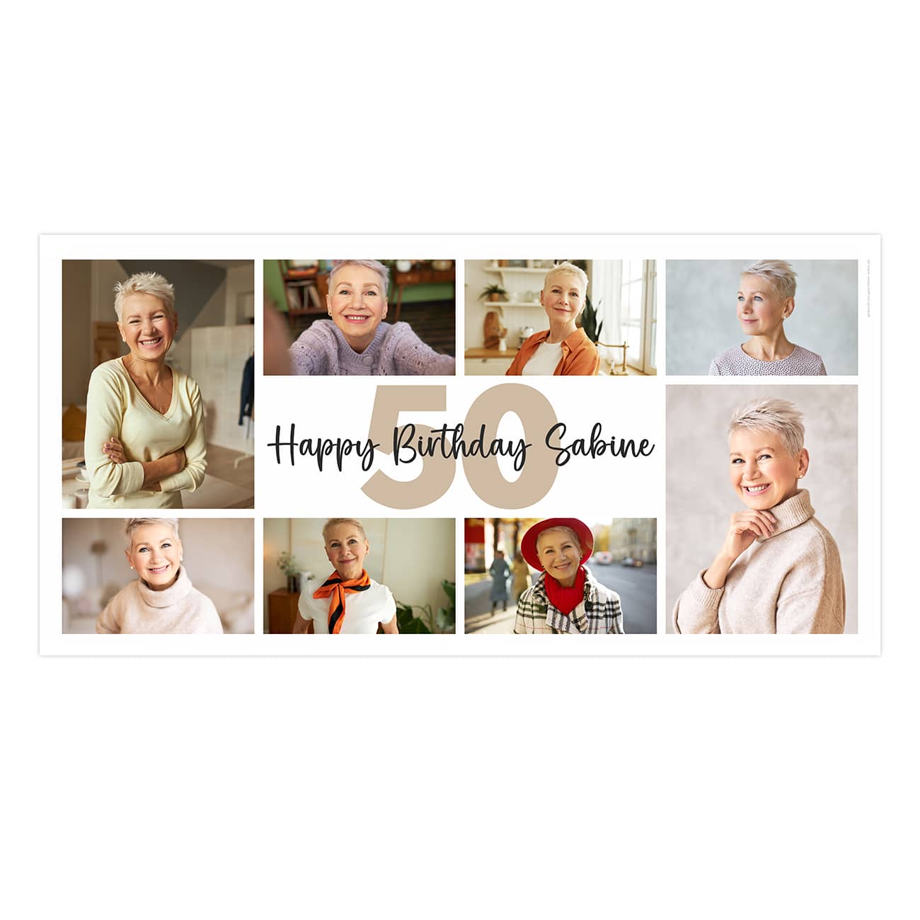 Geburtstagsbanner mit 8 Fotos, Alter und Wunschtext bedruckt