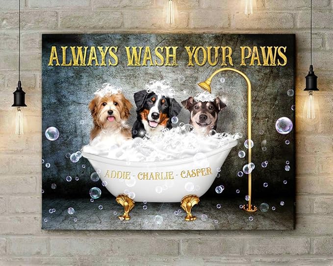 Diese personalisierten Leinwanddrucke mit lustigen Haustieren in der Badewanne bringen garantiert jedes Herz zum Lachen. Mit dem eigenen Hund oder Haustier gestaltet, wird daraus ein humorvoller Blickfang und eine originelle Geschenkidee für Tierliebhaber. Jetzt entdecken unter Geschenk Hundebesitzer Personalisiert