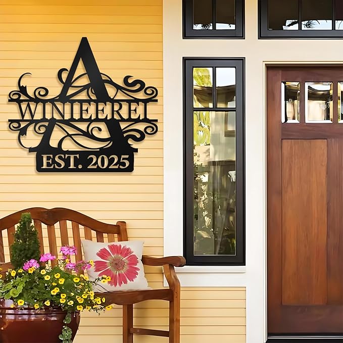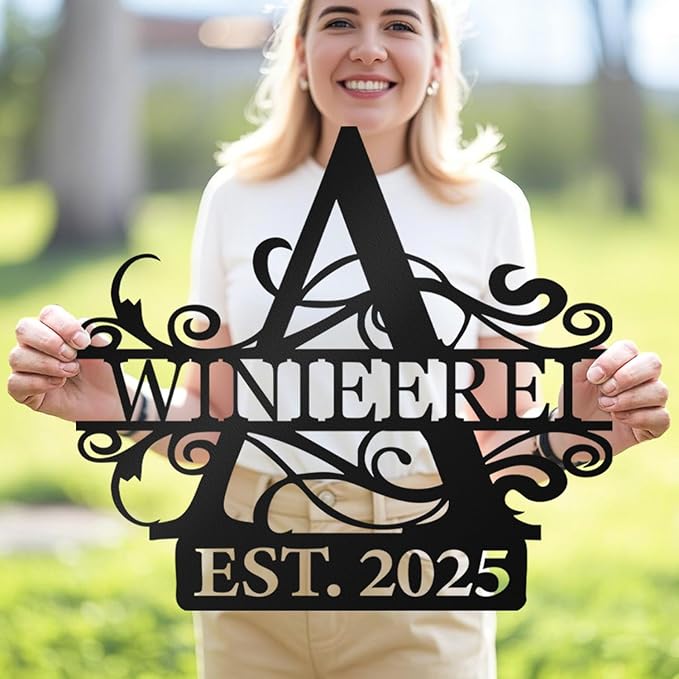 Geteiltes Monogramm-Schild „ESTABLISHED“ – Persönliche Geschichte in Metall
